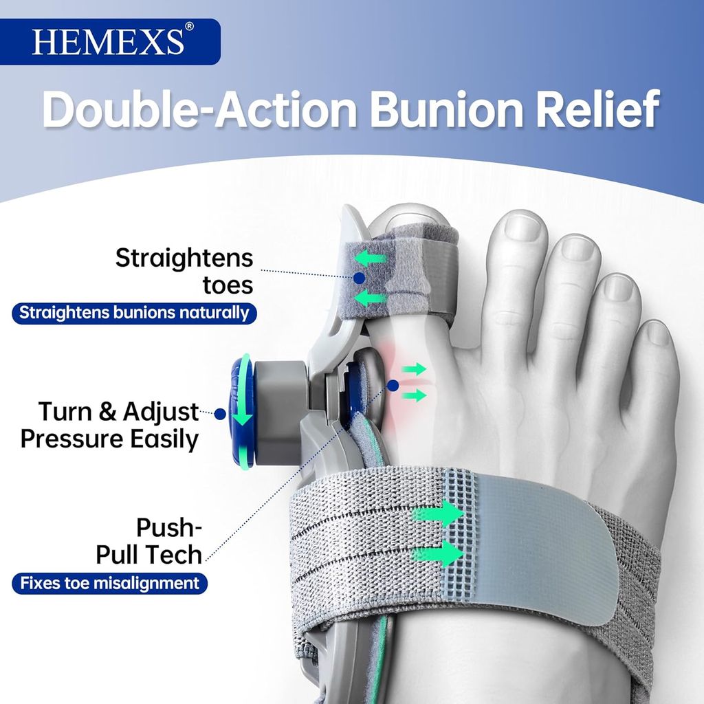 - [Breathable & Adjustable All-Day Comfort] Made from soft, breathable medical-grade materials with multiple adjustment points, providing all-day comfort while effectively realigning your big toe.
