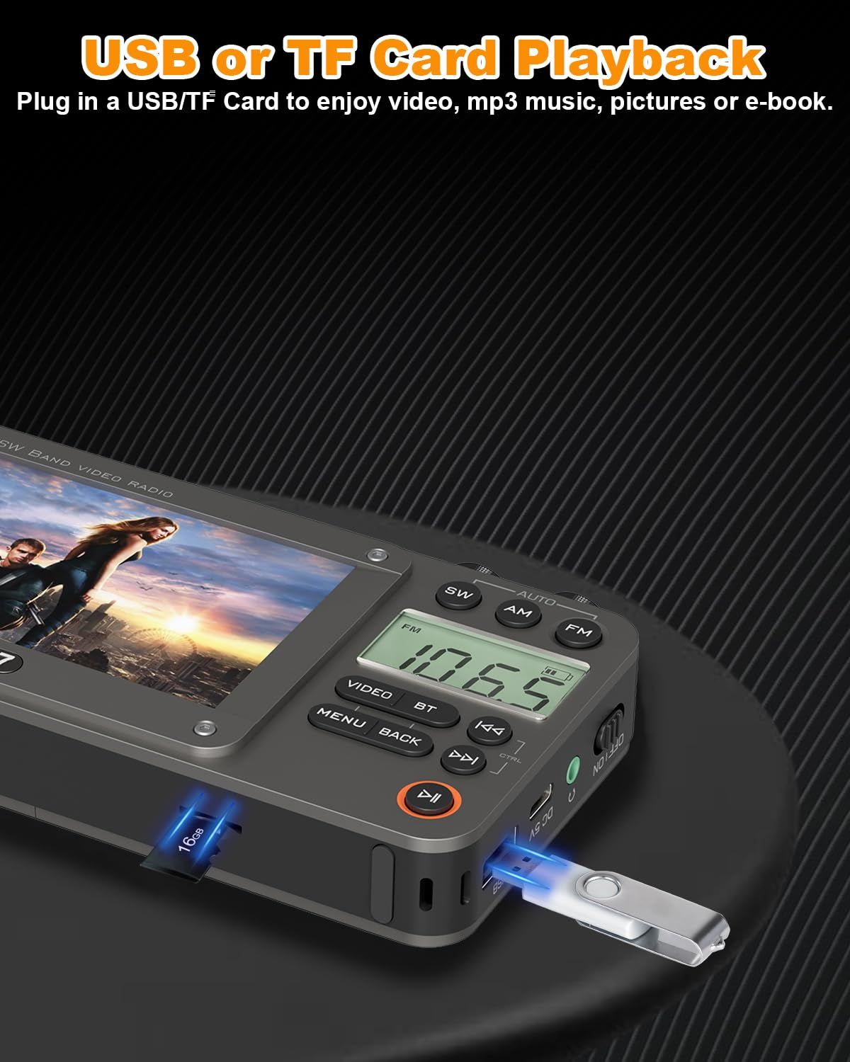 🔥HOT SALE🔥 COD!720p 4.3inch Screen AM FM SW Movie Video Radio with Bluetooth!Rechargeable Pocket Digital Movie Video Player Radio Support USB or Micro SD Card!5W Loud Speak and Headphone Jack for Travel Gifts