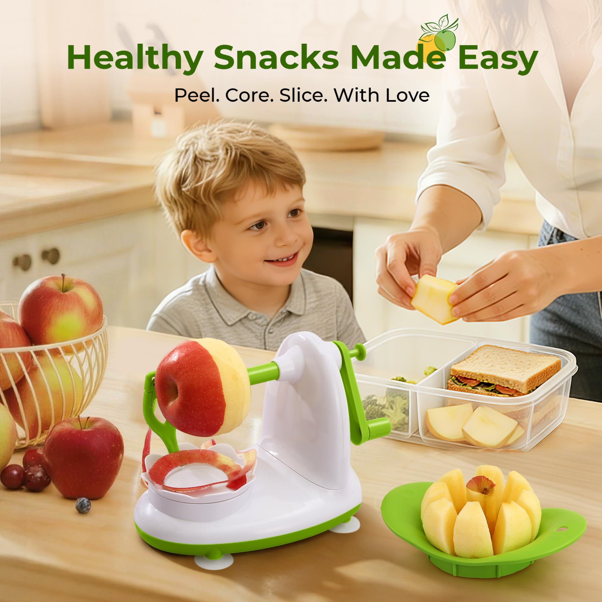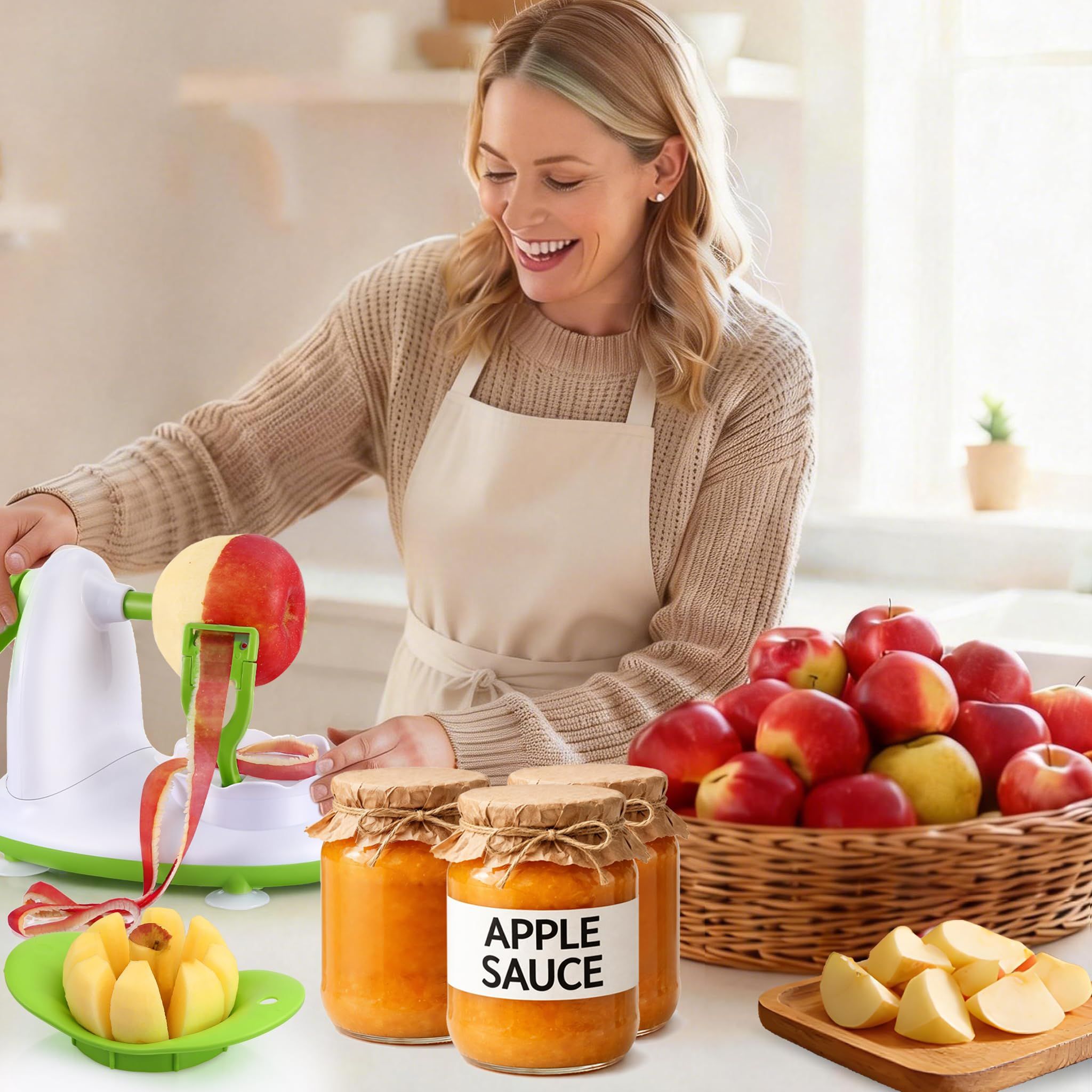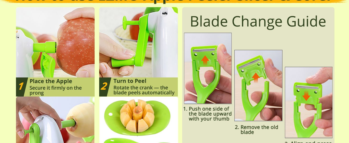 🔥HOT SALE🔥 COD!Apple Peeler for Apple Sauce and Pie, 8 Wedge Apple Slicer Corer with Stainless Steel Blades, Upgraded Strong Suction Base, Includes 2 Replacement Blades