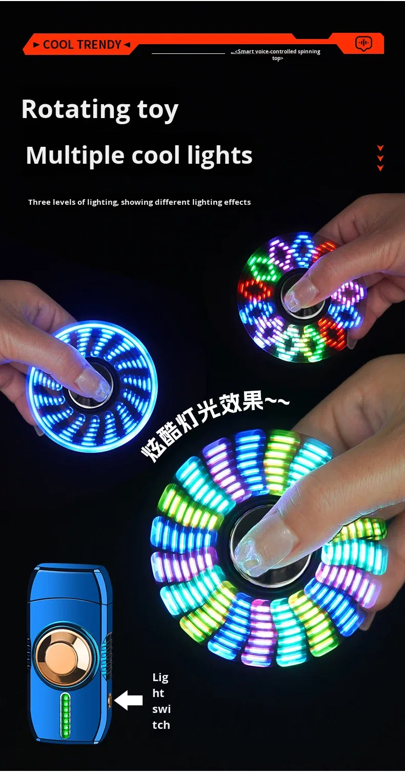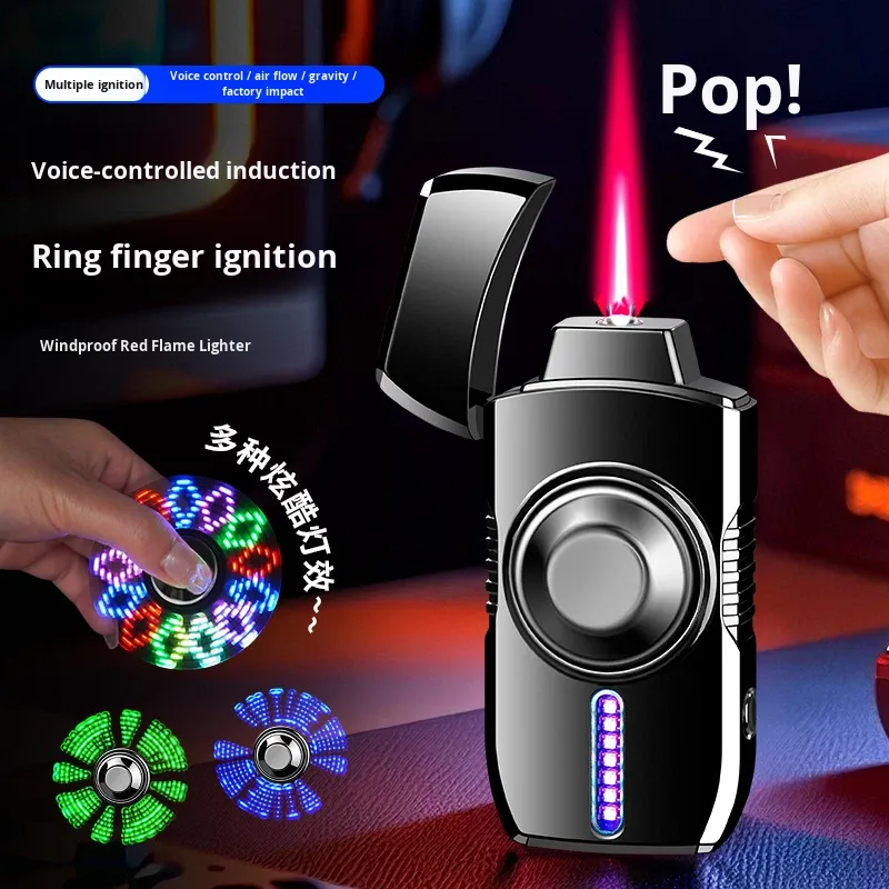 Trending Finger Spinner Lighter: Rechargeable, Voice-Activated, Stress-Relieving, Colorful LED Lights, Windproof Design